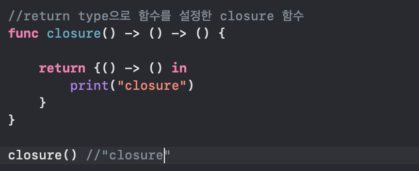 -클로저는 매개변수 뿐만 아니라 반환타입으로도 사용이 가능하다.