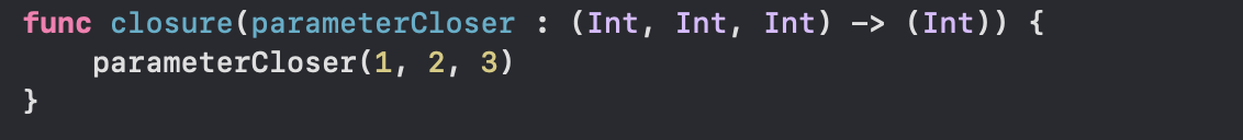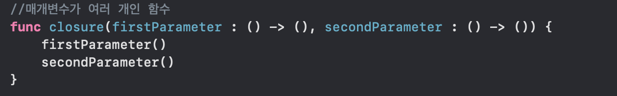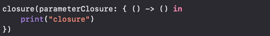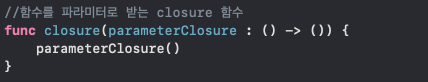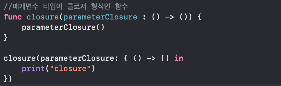 클로저와 함수는 같기 때문에 매개변수 부분에 클로저를 대입해줄 수 있다.