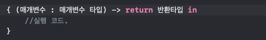 1) 클로저 헤드 : { (매개변수 : 매개변수 타입) -> return 반환타입
