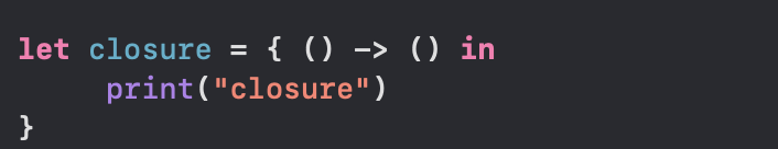 closure라는 상수에 클로저를 대입할 때, (매개변수) -> (반환타입) 이 들어가야 할 자리를 생략할 수 있다.