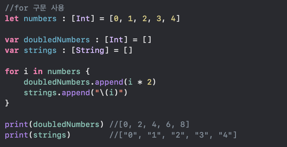 doubledNumbers 배열에는 numbers 배열에 있는 요소들에 * 2 해준 결괏값을 append 해주었고,