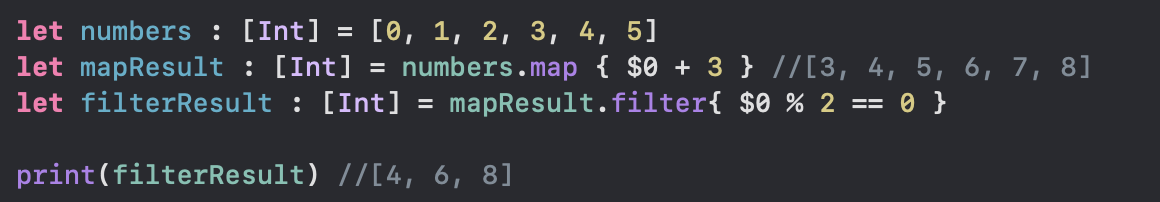 -Swift의 대표적인 고차 함수는 맵, 필터, 리듀스가 있다.