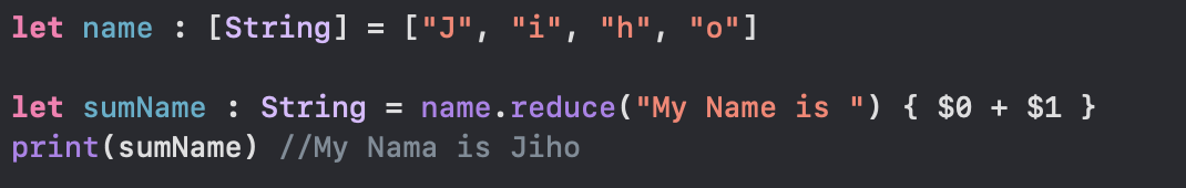 두 번째 형태의 리듀스는 반환값이 따로 없고, 대신 첫 번째 매개변수를 inout으로 설정하여 클로저 내부의 연산을 실행한다고 했다.