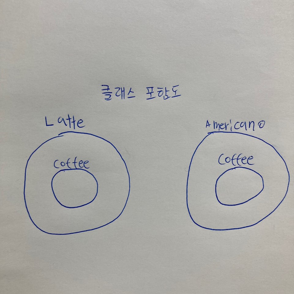 그림을 보면 Coffee 클래스가 갖는 특성들을 Latte나 Americano가 모두 포함하고 있지만,
