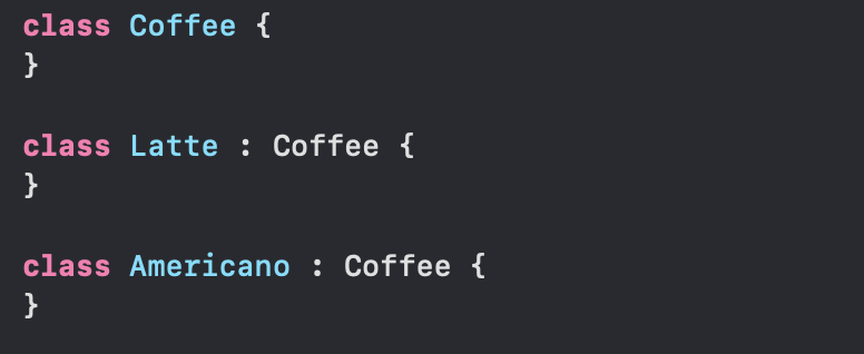 다시 말하면 Coffee는 Latte나 Americano인 것처럼 할 수 없지만, 반대로 Latte나 Americano는 Coffee인 척을 할 수 있다.