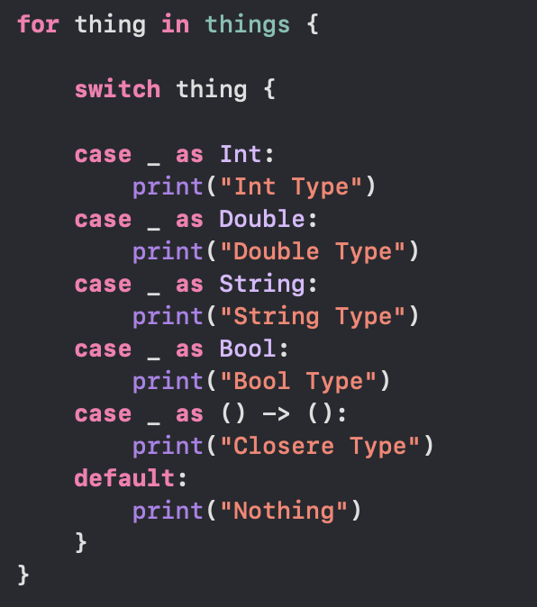 Any나 AnyObject는 무엇이든 가능한 타입이기 때문에 타입 결정이 런타임 시점에 이루어진다.