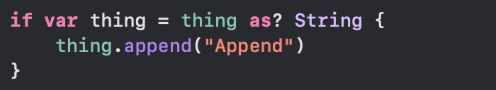 따라서 다운 캐스팅이 무조건 성공한다는 확신이 들 때만 as! 를 사용해야 한다.