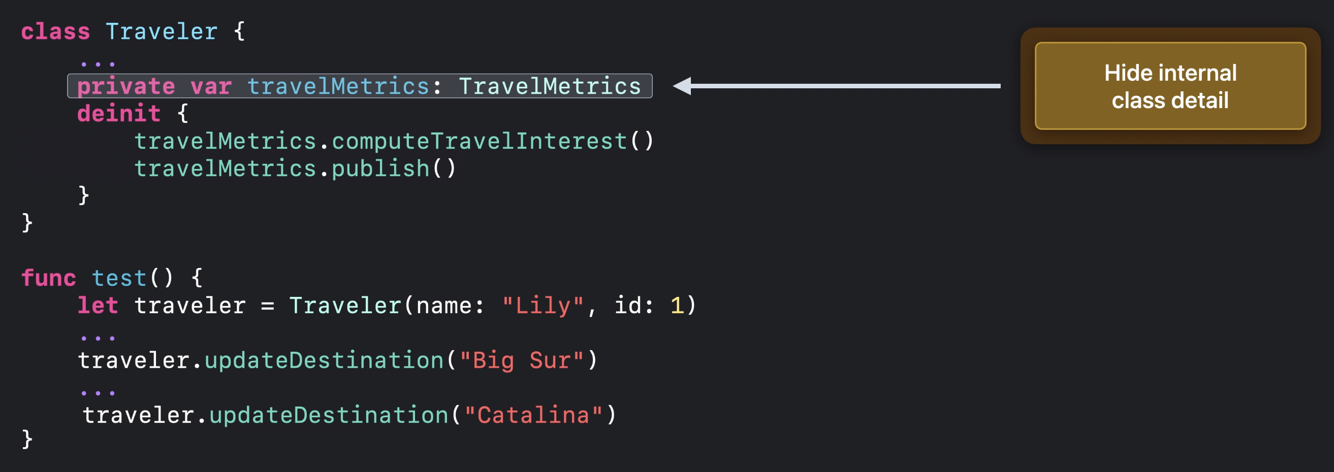 'travelMetrics' 를 private 하게 만들어 내부적으로 사용하는 것이다.