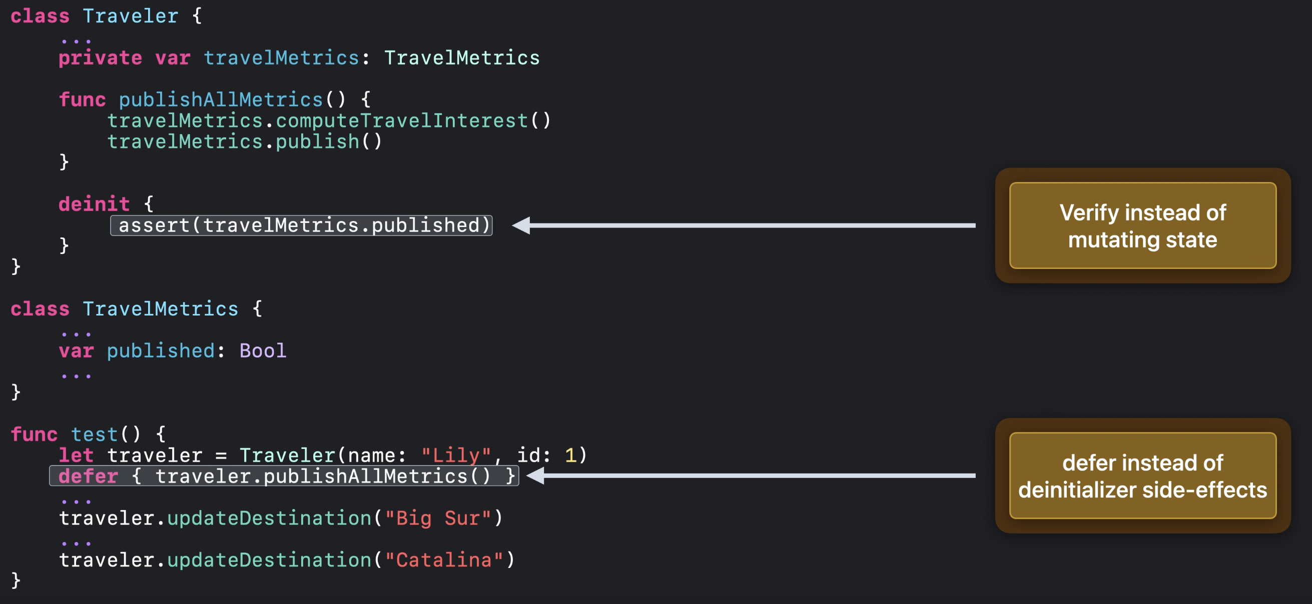 deinitializer side-effects 를 안전하게 처리하기 위한 다양한 기술도 존재한다.