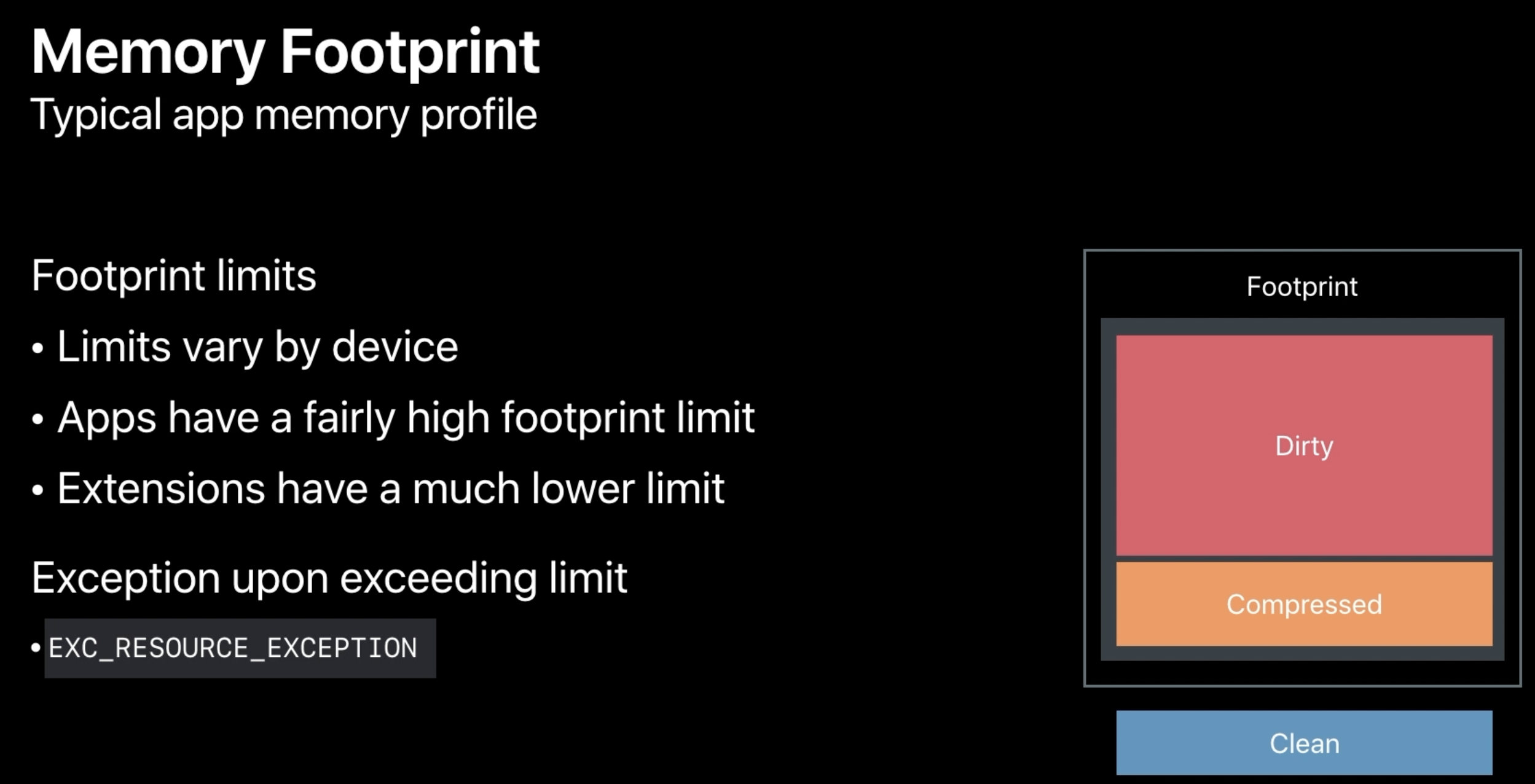 하지만 앱 본체보다 훨씬 작은 메모리 사용량을 가지기 때문에 더욱 주의 깊에 메모리를 관리해야 한다.