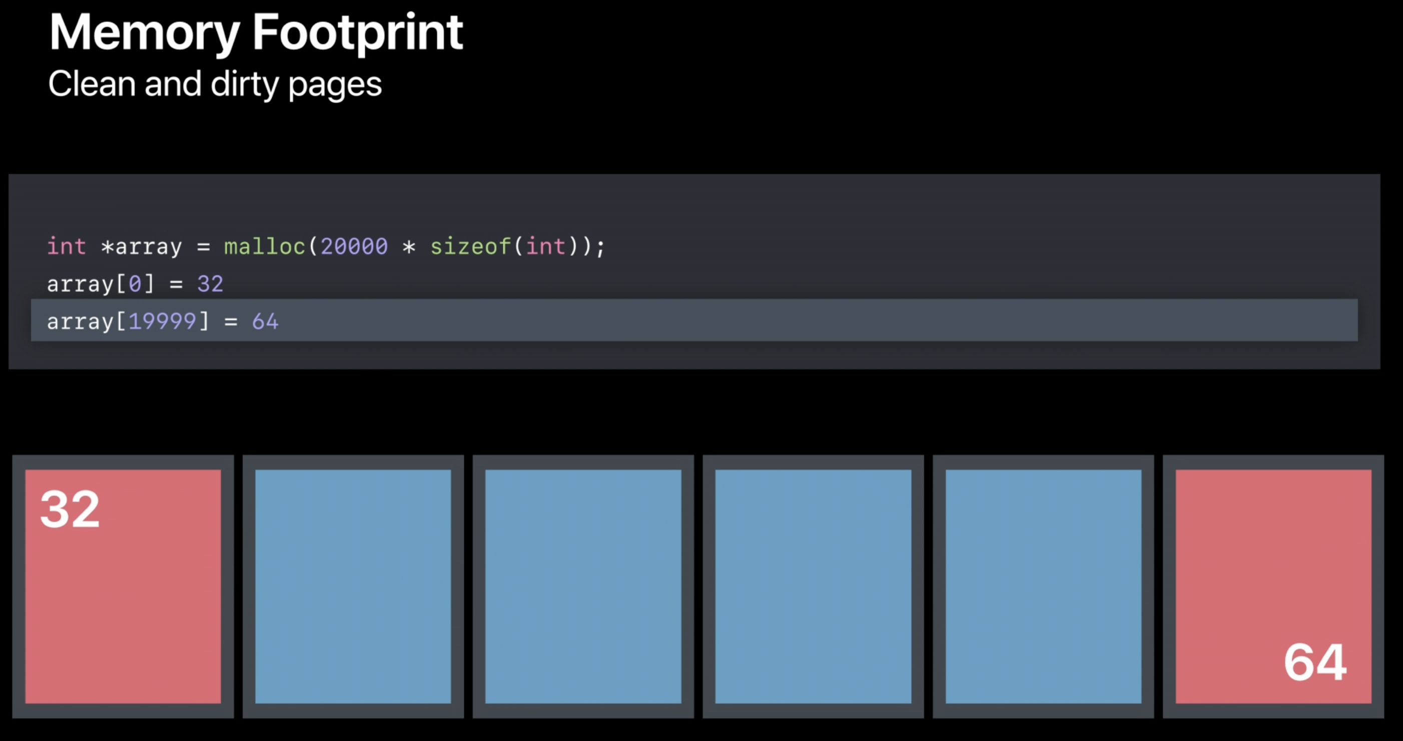 그리고 배열의 처음과 끝에 있는 정수를 변경하면, 해당 정수가 위치한 페이지는 'dirty' 상태가 되고,