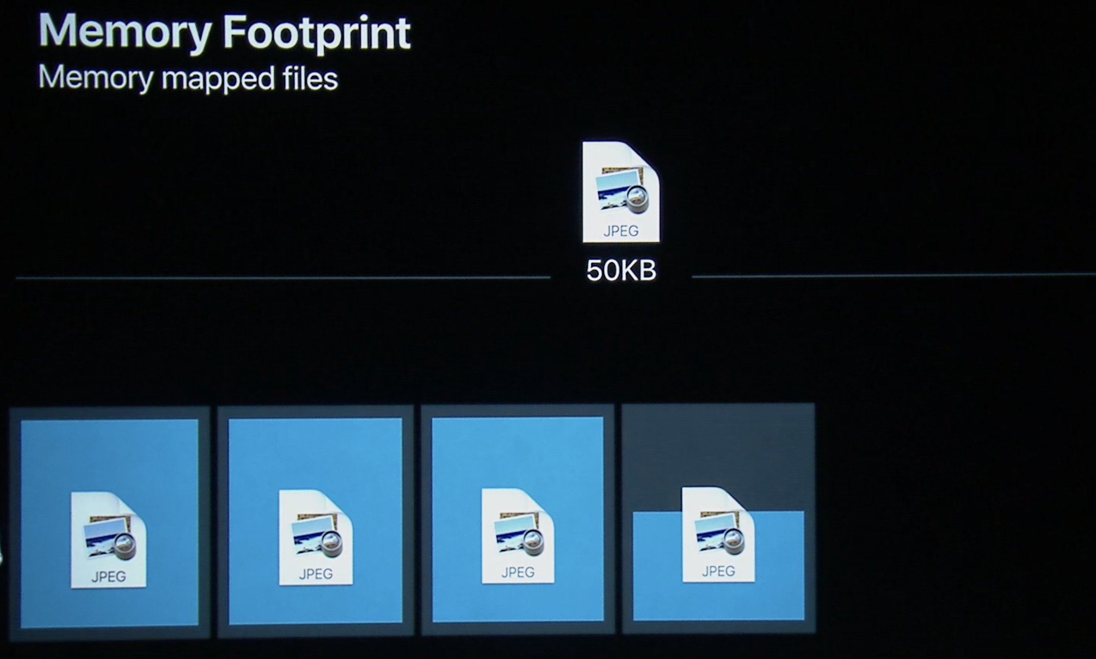 50KB 크기의 JPEG 이미지가 메모리에 매핑되면, 이는 대략 4개의 메모리 페이지에 매핑된다. 하지만 네 번째 페이지는 완전히 차지 않기 때문에, 이 페이지의 나머지 부분은 다른 용도로 사용될 수 있다.