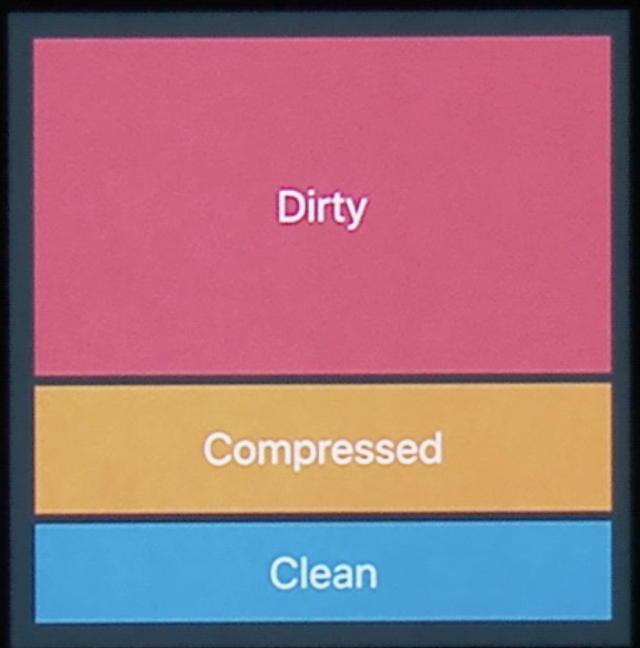 메모리 샤용량은 'Dirty', 'Compressed' 메모리로 측정이 된다.