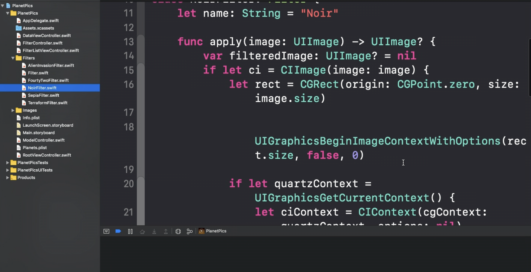 우리는 NASA에서 얻은 고해상도의 태양계 이미지에 필터를 적용하는 앱을 개발하고 있었다.