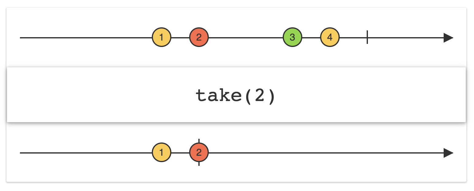 'take' 연산자는 n개의 요소에 대한 이벤트를 받고, 나머지 요소를 제외한다.