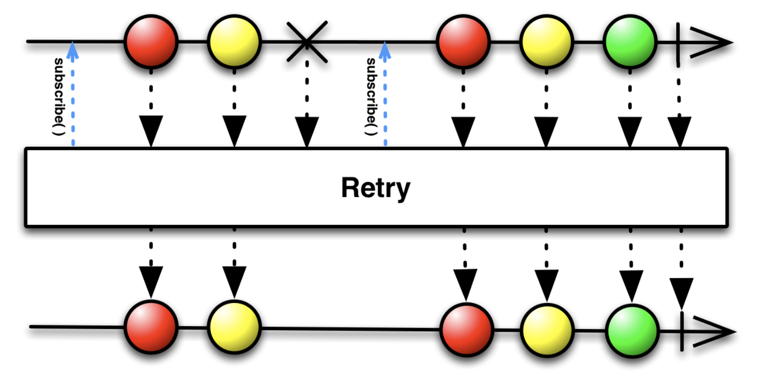 retry 연산자는 에러가 방출되기 전까지의 모든 항목을 중복해서 방출할 수 있다.