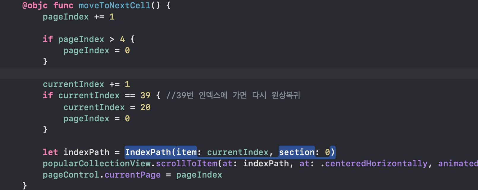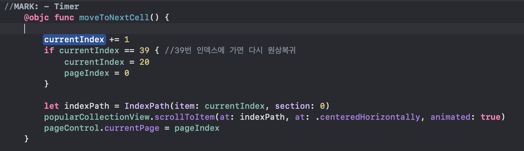 -3초마다 다음 셀로 넘겨주다가, 특정 인덱스에 도착하면 다시 처음 보여준 셀로 되돌려준다.