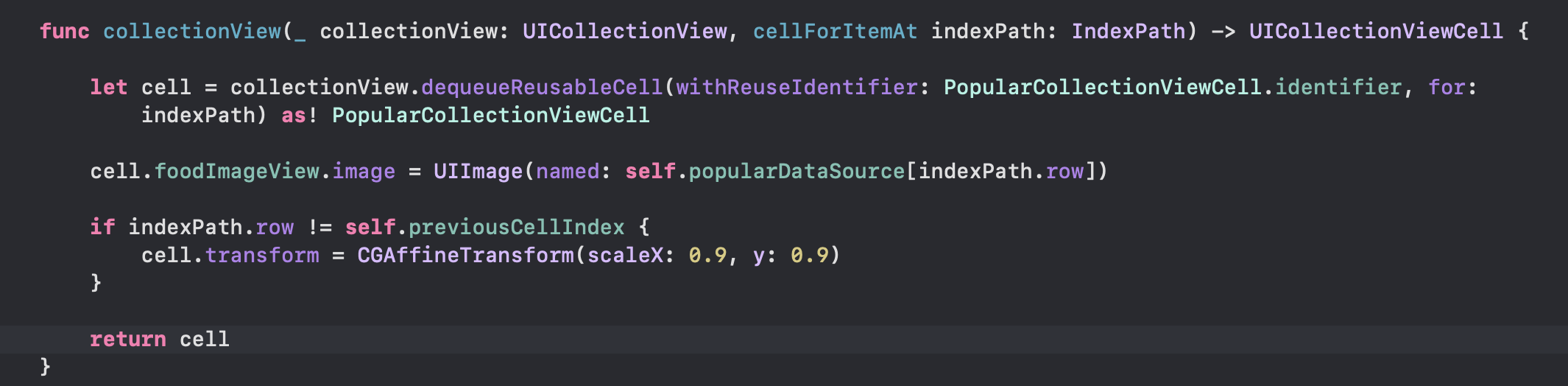 -스크롤을 통해 페이지를 넘길 때 cell을 center에서 스크롤해주기 때문에 간격을 맞춰놓아야 함.