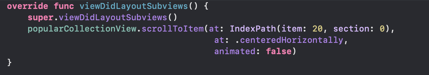 -왜 viewDidLayoutSubviews 메소드에 적냐? CollectionView와 Cell이 모두 그려지고 난 후에 index를 옮겨줘야 해서