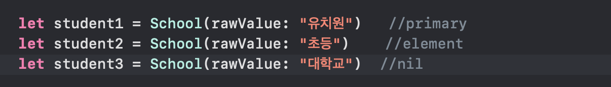 Swift의 열거형에서는 원시값이 없으면 각 항목이 그 자체로 고유의 값이 될 수 있다.