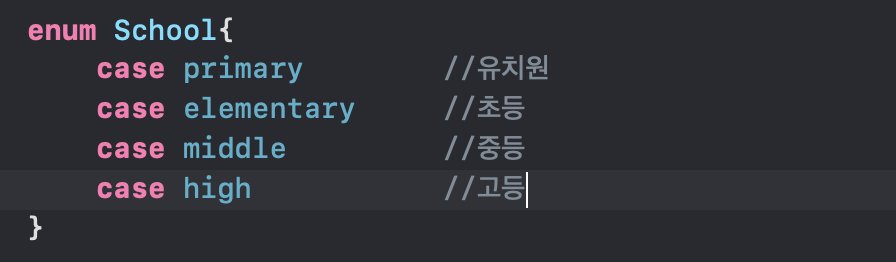 위의 항목들은 case로 선언하고, 값(원시값)을 넣어주지 않았다.